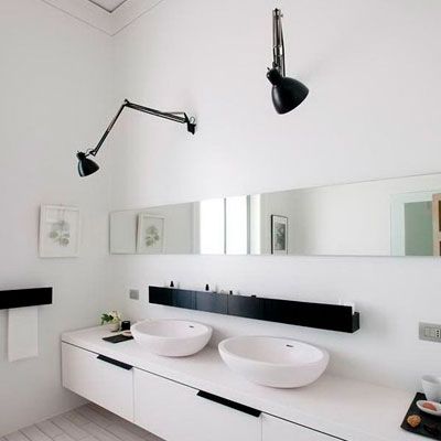 En annen svært populær lampe er Glo Ball fra Flos. Her som vegglampe er det en veldig fin og enkel lampe som har en organisk form som passer godt inn i åpne miljøer, så den egner seg også godt på badet.