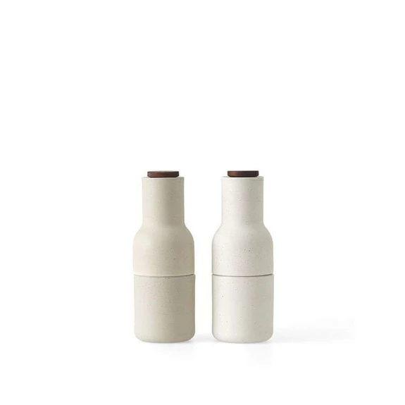 Bottle Grinder Ceramic Sand 2-pack er en moderne tolkning av den tradisjonelle kjøkkenkvernen – hvert sett inkluderer to kverner. De er laget av keramikk, som har fått en matt finish med et håndlagd utseende, i form av små ufullkommenheter. Kombinert med et lokk av tre, har kvernene et harmonisk design som passer inn i ethvert kjøkken.