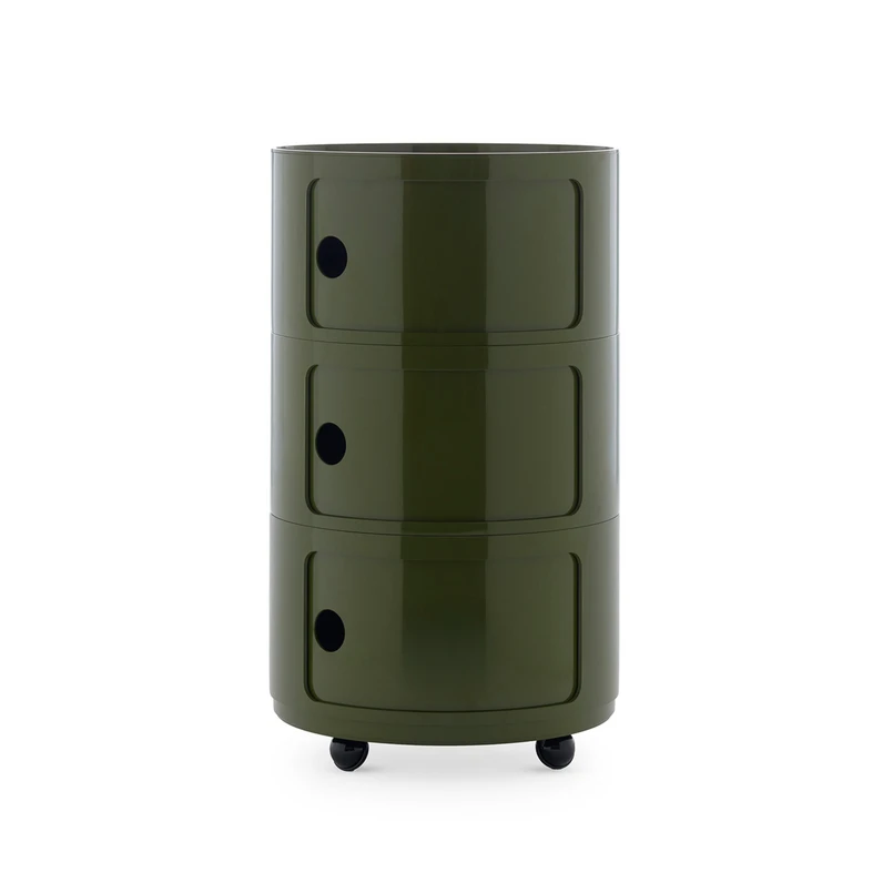 Dette møbelet er designet av den anerkjente designeren Anna Castelli Ferrieri og står for funksjonalitet og stil. De tre elementene i systemet gir god oppbevaringsplass og muliggjør fleksibel bruk. En designklassiker som kombinerer estetikk og praktiske krav på en perfekt måte.