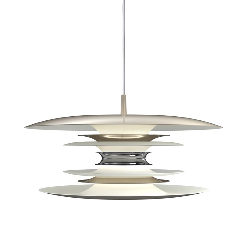 Diablo pendellampe, designet av Joakim Fihn, kombinerer skandinavisk designestetikk med et klart formspråk. Den er laget av høykvalitetsmetall og har en tidløs greigefarge, og passer harmonisk inn i forskjellige oppholdsrom som stue, spisestue eller kjøkken. Den presise utførelsen og den europeiske kvaliteten gjør lampen til et holdbart og stilig element i ethvert interiør.