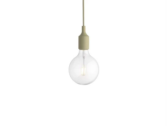 E27 Pendellampe Beige/Grønn er en vakker forening av industriell design og skandinavisk enkelhet. Med den nakne, fullt synlige lyskilden og den gummierte sokkelen skaper lampen et enkelt, men tydelig og definerende uttrykk. Sokkelen har en nøye utvalgt beige/grønn skjerm, men kan også fås i en rekke andre farger etter ønske. Siden pæren ikke er avskjermet, kan lyset skinne fritt og uhindret til alle sider i et klart og direkte lys som når hele veien rundt.