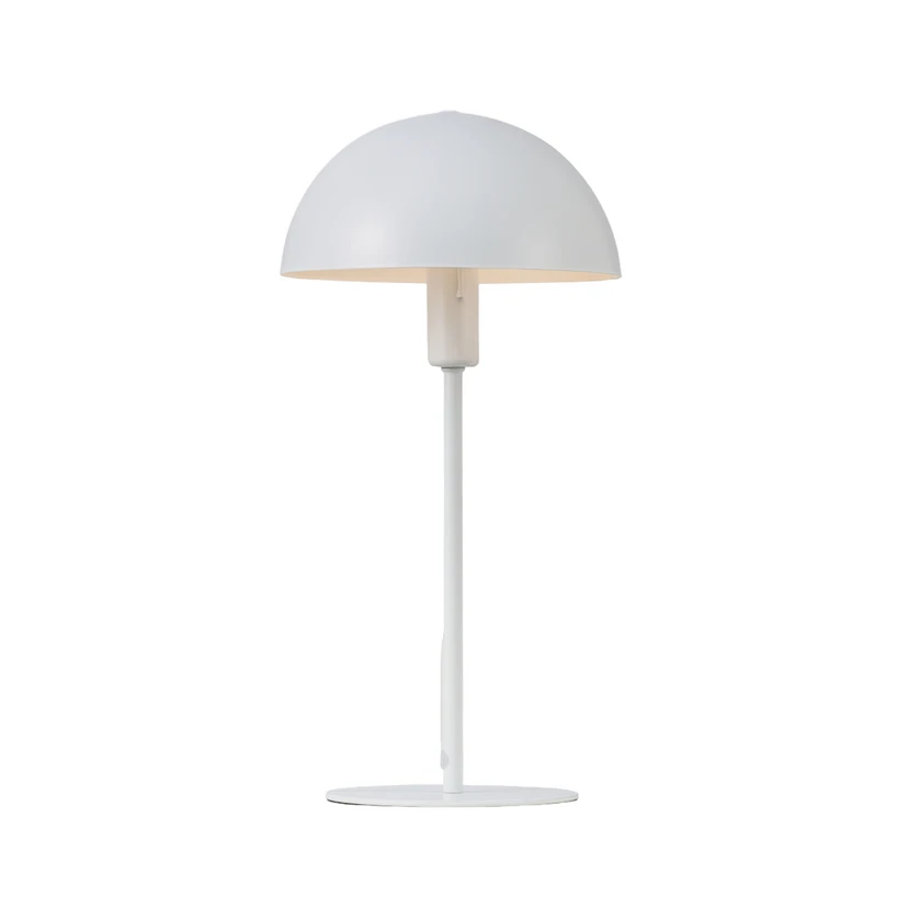 Ellen Bordlampe Hvit er en klassisk designet belysningsmodell med en vakker tidløshet i formen, slik at den alltid vil fremstå som et stilig element i interiøret. Den kuppelformede skjermen utfyller den slanke rammen på en vakker måte og skaper et spennende samspill av former, samtidig som designet er enkelt og minimalistisk.
