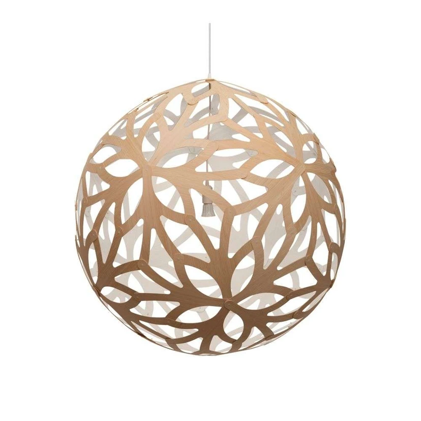 Floral Pendant Ø80 White 1 Side ble designet 3 år etter designklassikeren av David Trubridge. Den ble designet som et mykere og mer dekorativt alternativ til Coral. I likhet med hans andre lamper er inspirasjonen hentet fra naturen - denne gangen fra blomster. Designerens kjærlighet til naturen er tydelig i hans design, hvor både inspirasjon og materialer kommer fra.