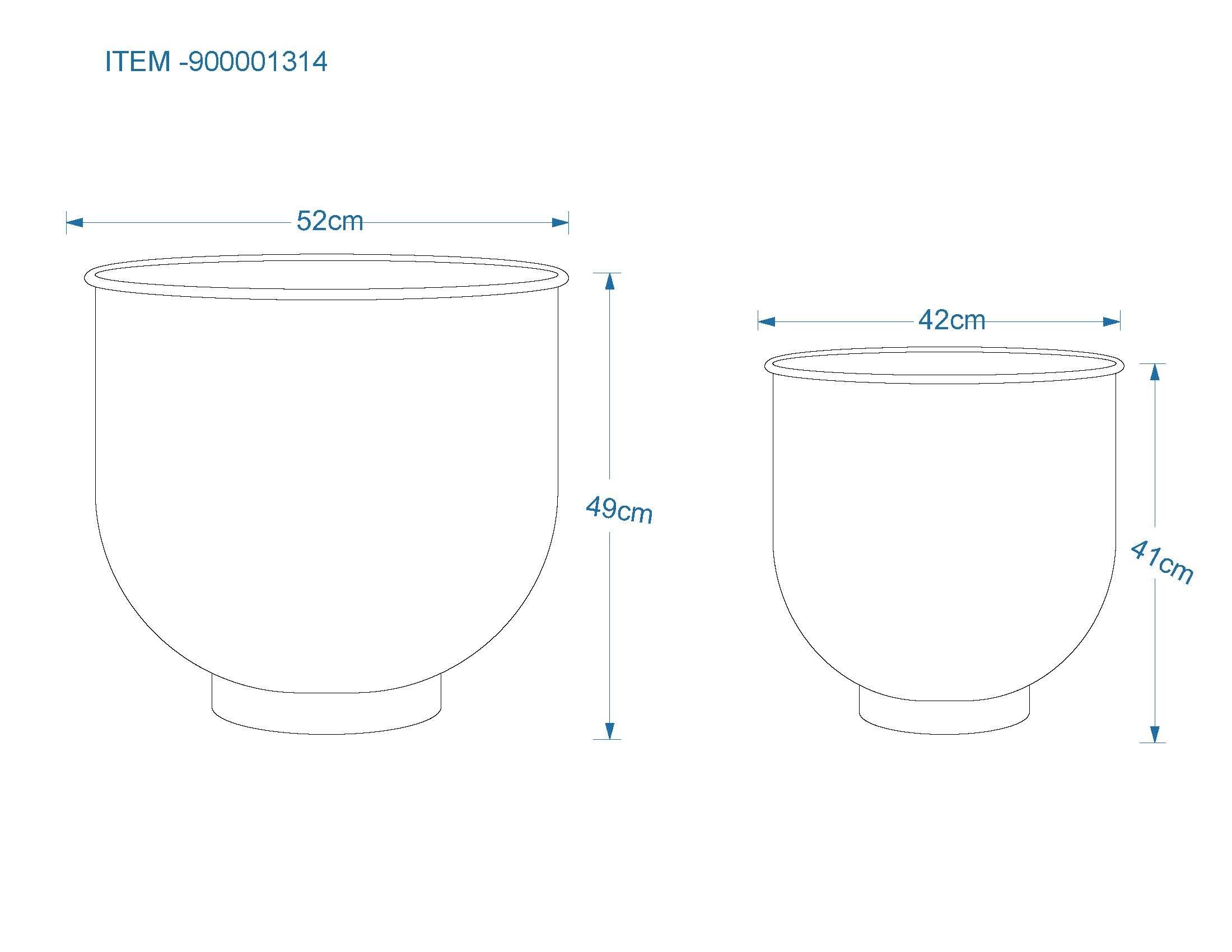 - liten blomsterpotte: høyde 41 cm, Ø 42 cm; stor blomsterpotte: høyde 49 cm, Ø 52 cm