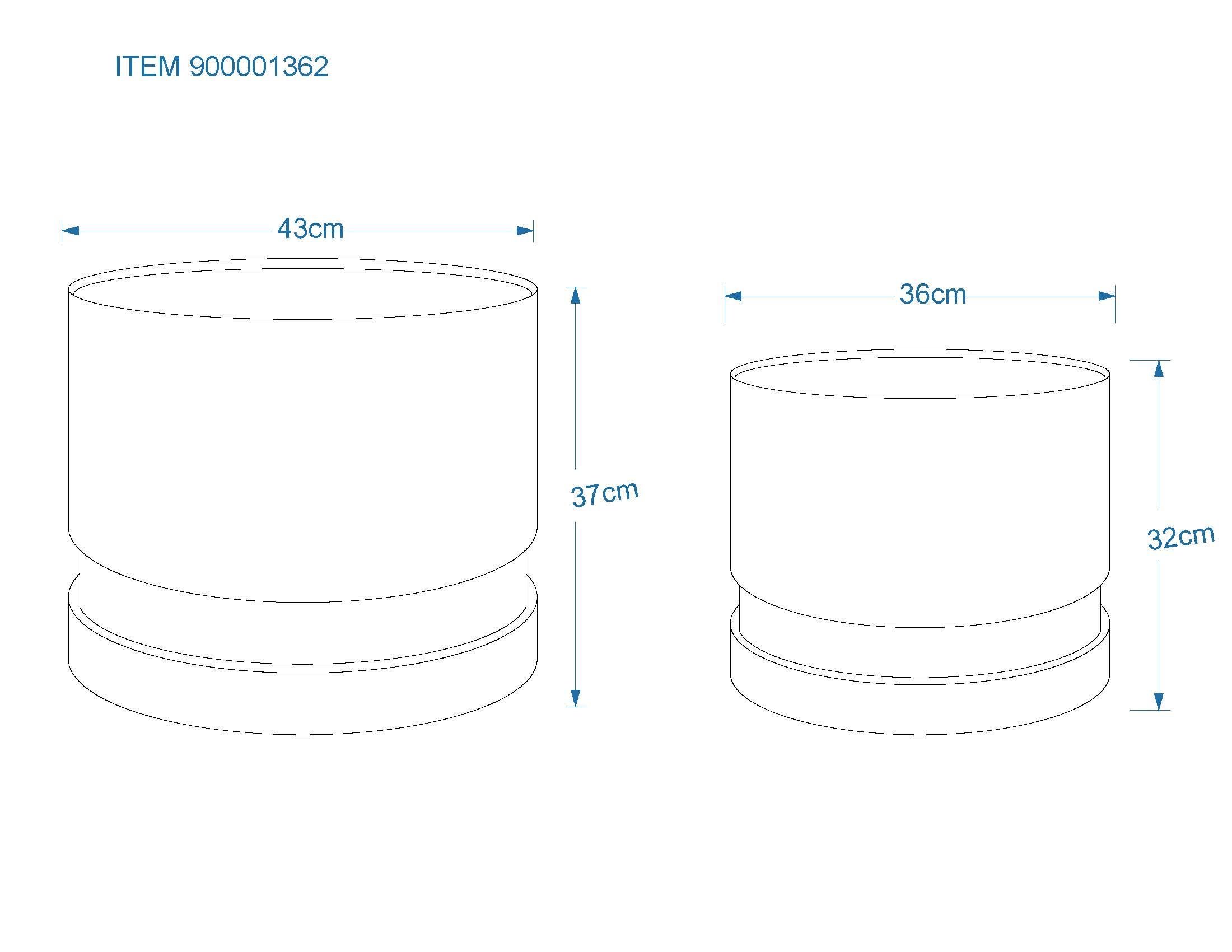 - Liten blomsterpotte: Høyde 32 cm, Ø 36 cm; Stor blomsterpotte: Høyde 37 cm, Ø 43 cm