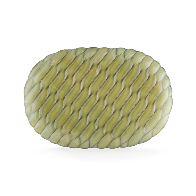 Jellies Family-brettet kombinerer moderne design med praktisk allsidighet. Det er laget av robust, termoplastisk teknopolymer og overbeviser med sin holdbare kvalitet og tiltalende utseende. Den stilige fargen med bladmønster på den ene siden og grønn på den andre siden setter aksenter og passer harmonisk inn i borddekorasjonen.