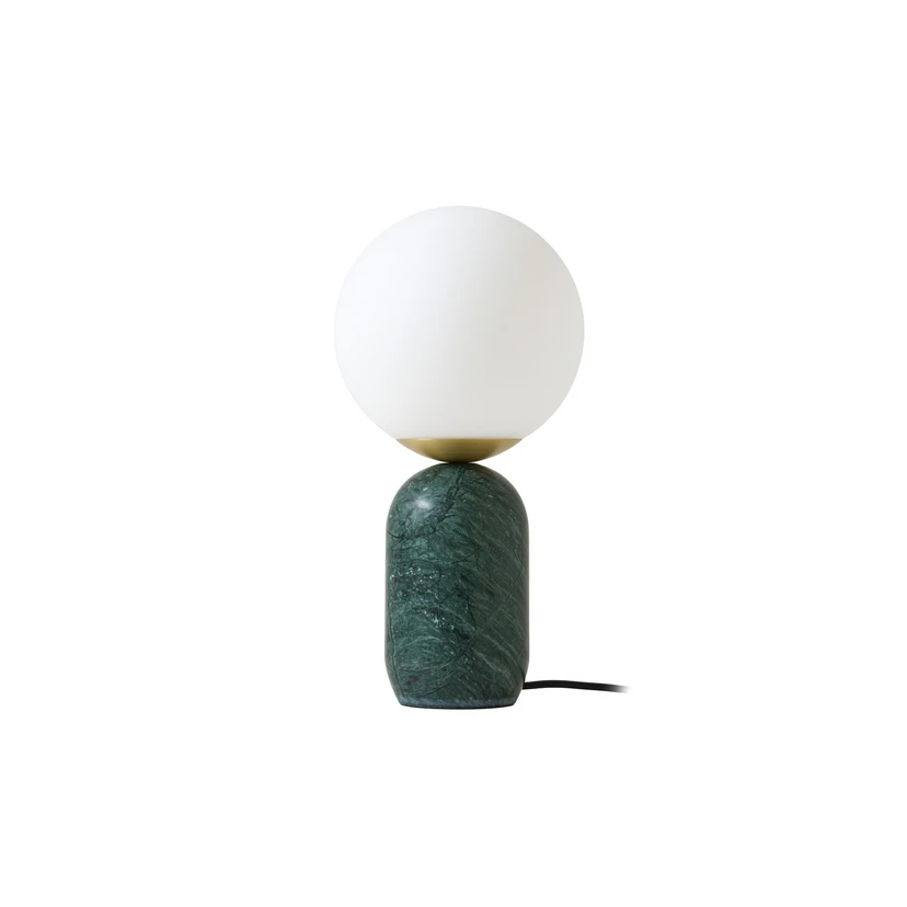 Bordlampen Lennes kombinerer moderne design med høykvalitetsmaterialer. Den grønnmarmorerte foten i edel marmor danner en harmonisk helhet med den hvite glasskjermen, som sørger for en jevn og behagelig lysfordeling. Denne kombinasjonen av marmor og glass gir lampen en tidløs eleganse som passer perfekt inn i moderne stuer og spisestuer.
