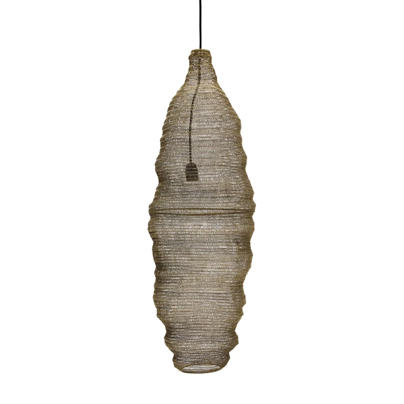 Pendellampen Mesh kombinerer moderne design med et snev av rustikk eleganse. Den er laget av høykvalitets jern i en elegant gull-antikk farge, og gir stilfulle aksenter i ethvert rom. Den filigrane nettstrukturen på lampeskjermen skaper et fascinerende spill mellom lys og skygge, som gir rommet en spesiell atmosfære. Enten i stuen eller spisestuen – denne pendellampen blir et blikkfang og gir rommet et unikt preg.
