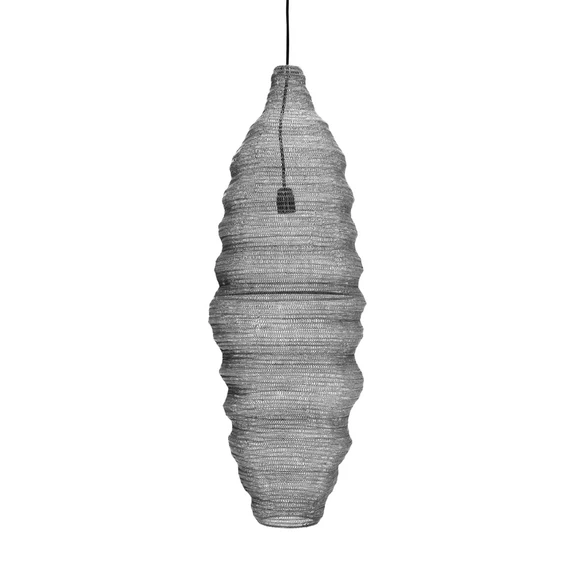Pendellampen Mesh kombinerer moderne design med en fascinerende materialkombinasjon av jern, polyvinylklorid og bakelitt. Den sølvfargede, børstede overflaten gir lampen en tidløs eleganse og gjør den til et stilig blikkfang i ethvert rom. Med sitt gjennomtenkte design passer den harmonisk inn i ulike interiørstiler og setter målrettede aksenter i stuer og spisestuer.