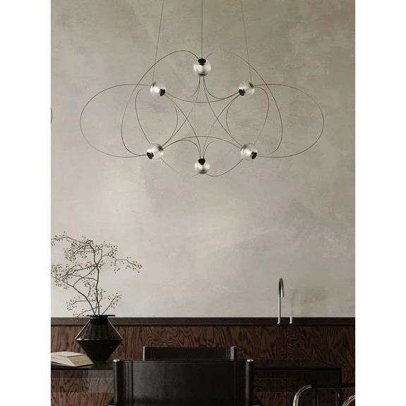 Munari 6 Pendellampe Black fra DCW er en unik pendellampe som bringer et snev av kunstnerisk eleganse inn i hjemmet ditt. Inspirert av den italienske Op Art-bevegelsen og skapt av den visjonære designeren Bruno Munari, kombinerer denne lampen funksjonalitet med et lekent design. Med sine seks lyskilder skaper Munari 6 Pendant en kosmisk atmosfære som minner om et spirografi av lysende planeter som svever i rommet. Den er laget av stål, aluminium og polykarbonat, noe som sikrer både holdbarhet og et stilig utseende. Den svarte fargen gir et moderne og sofistikert uttrykk som passer perfekt inn i ethvert interiør. Lampen leveres i en flat pappeske med enkle monteringsanvisninger, noe som gjør det enkelt for deg å montere og nyte denne lysinstallasjonen. Munari 6 Pendant er ikke bare en lampe, men en opplevelse som bringer lys og kunst sammen i hjemmet ditt.