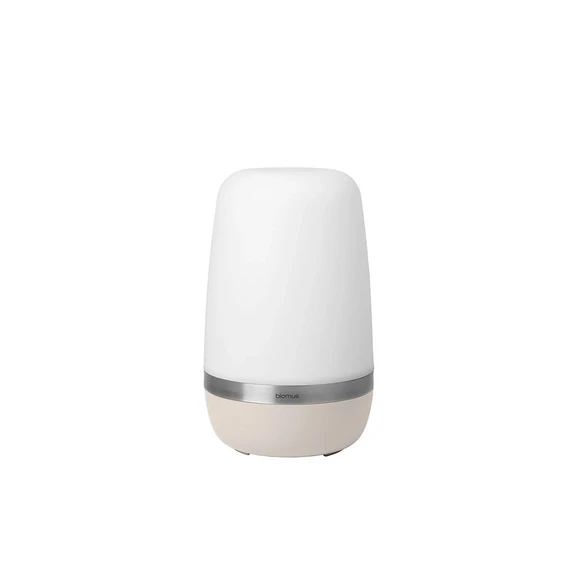 Det innebygde LED-lyset skinner lett gjennom skjermen av plast. Den fås med en bunn i enten patinagrå, varmgrå eller moonbeam, som er supplert med en rustfri metallring. Velg mellom den lille lampen med en høyde på 15 centimeter og en diameter på 9, eller den store med en høyde på 25 og en diameter på 15 centimeter.