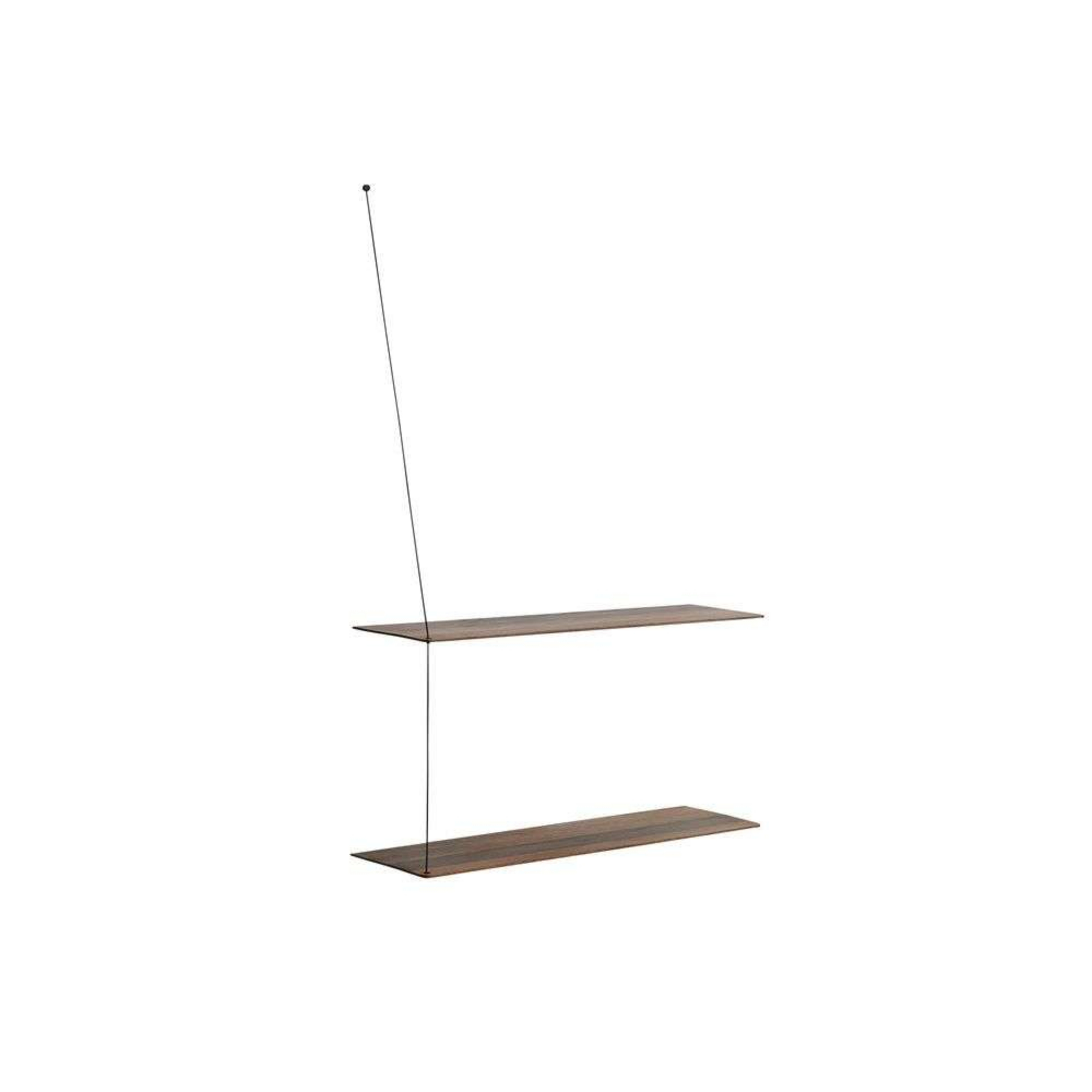 Stedge Shelf Smoked Oak er et minimalistisk hyllesystem med et design som både er lett, enkel og har en helt tydelig struktur. De solide hyllene ser ut til å henge i en tynn tråd – den optiske illusjonen skaper et øyeblikk av undring over hvordan det er mulig. Stedge Shelf kommer med to hyller – ønsker du å utvide hyllesystemet ditt med en eller to hyller, har du muligheten til å kjøpe.